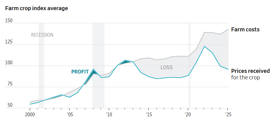 The cost of inputs has increased significantly — and demand and market prices have lagged, resulting in the decade-long loss profile shown in the chart. Tariffs have made the demand situation even more dicey.