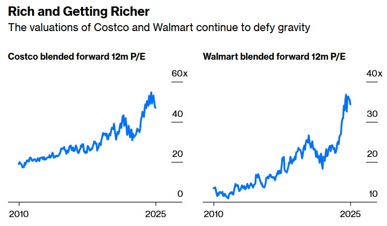 A Bloomberg column by Jonathan Levin points out a similar circumstance today: “Forget Nvidia. Costco and Walmart Look Scarier”: